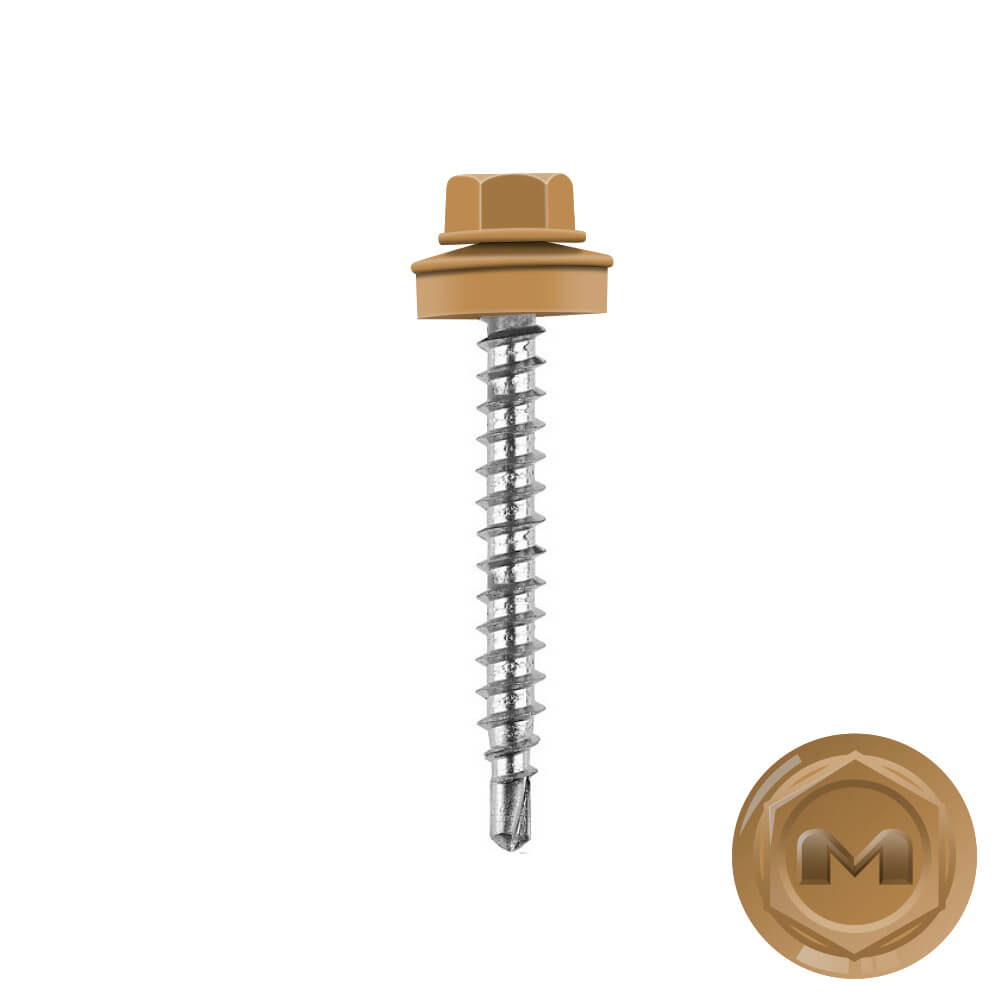Кровельные саморезы Daxmer (Даксмер) по дереву цветом RAL1011 Светлое дерево 4,8*35мм окрашиваются УФ-стойкой полиэфирной порошковой краской. Цинковое антикоррозийное покрытие обеспечивает длительный срок службы саморезов (не менее 25 лет). Специальная металлическая шайба с ЕРDМ - уплотнителем обеспечивает плотное прилегание профилированного металла (кровли) к деревянной обрешетке, а также препятствует попаданию влаги.