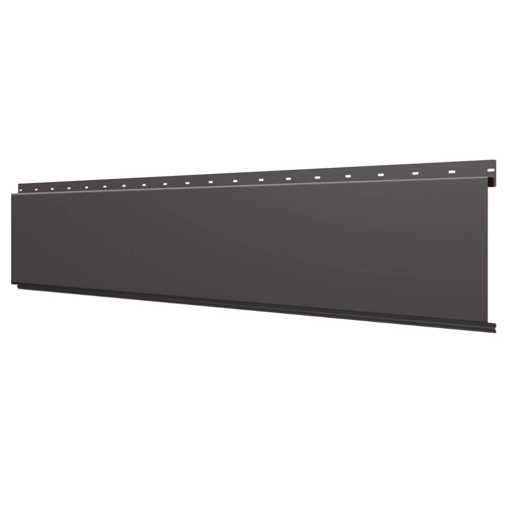 Линеарная потолочно-стеновая панель ГЛАДКАЯ цвет RAL8019 Темный Шоколад применяется в качестве софитов для подшивы крыши, наружной и внутренней отделки потолков, стен, фронтонов фасада дома в Владимире.