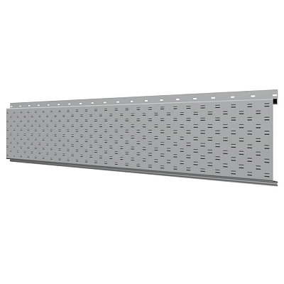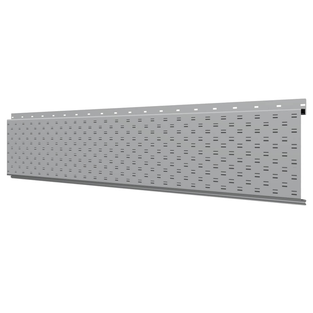 Линеарная потолочно-стеновая панель с ПЕРФОРАЦИЕЙ для вентиляции цвет RAL7004 Серый применяется в качестве софитов для подшивы крыши, наружной и внутренней отделки потолков, стен, фронтонов фасада дома в Владимире.