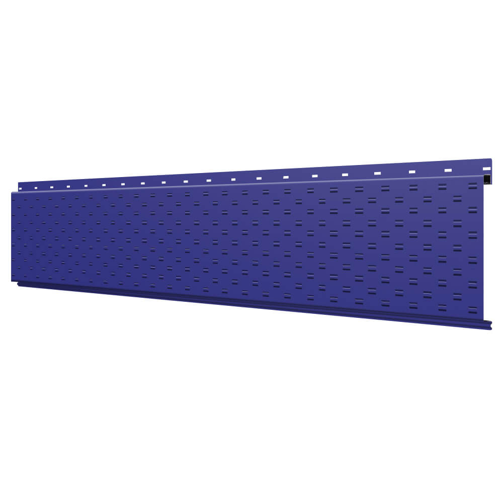 Линеарная потолочно-стеновая панель с ПЕРФОРАЦИЕЙ для вентиляции цвет RAL5002 Синий Ультрамарин применяется в качестве софитов для подшивы крыши, наружной и внутренней отделки потолков, стен, фронтонов фасада дома в Владимире.