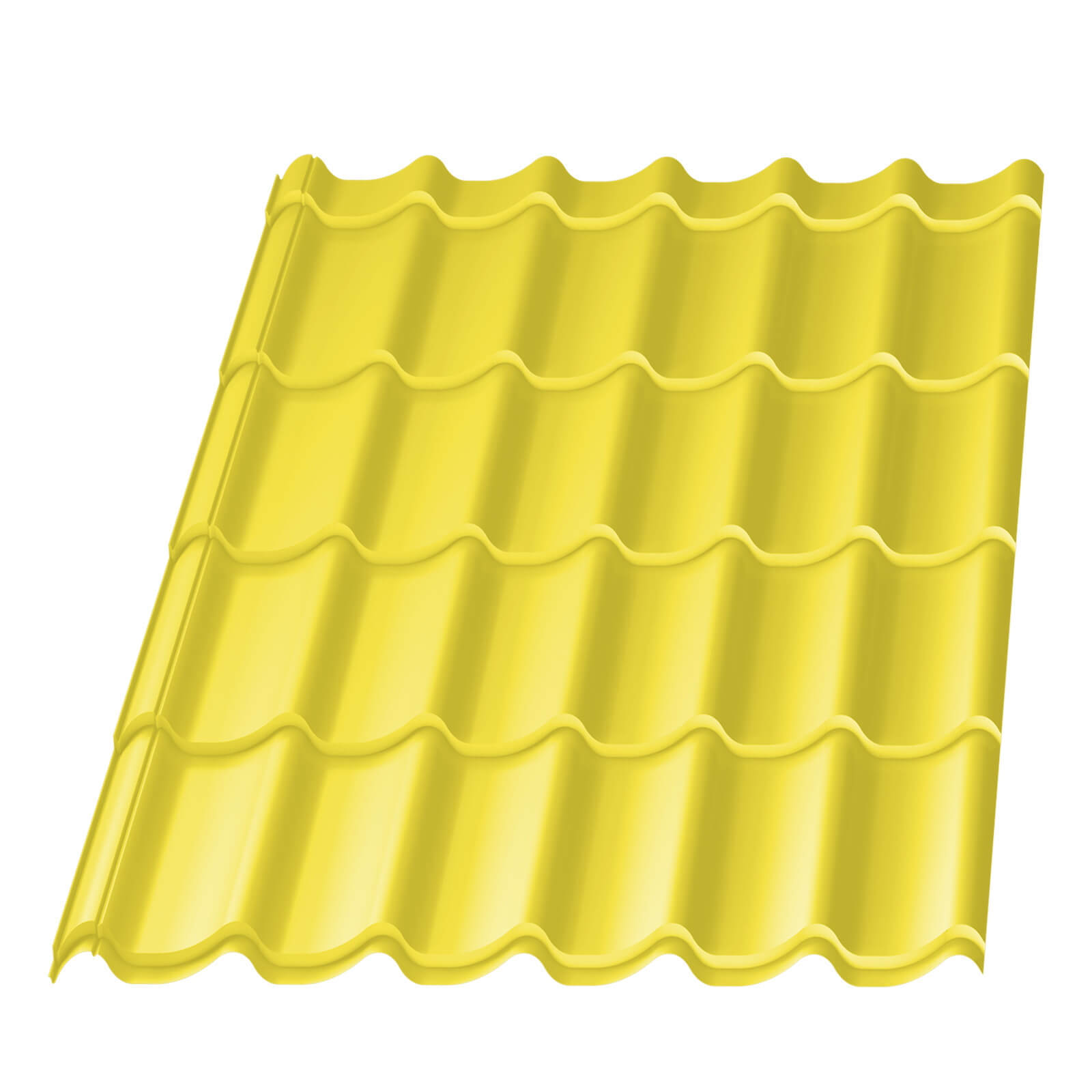 Металлическая черепица Меркурий RAL 1018 Желтый имеет профиль внешне на кровле напоминающий классическую керамическую черепицу. Меркурий — это обновленный аналог профиля металлической черепицы для кровли крыши. Форма профиля имеет богатый внешний вид напоминающий небольшие набегающие волны. Лучшие показатели герметизации сделали профиль Меркурий гарантом стабильной и долговременной службы на крышах в Владимире. Данный профиль отличается не только своим качеством, но и благородным внешним видом.
