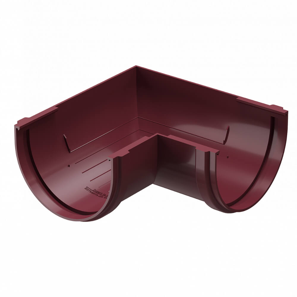 Угловой элемент желоба универсальный ДЕКЕ STANDARD d120мм 90 градусов цвет RAL 3005 Красный в Владимире. Угловые элементы устанавливаются как на внешних, так и на внутренних углах кровли и предназначены для соединения желобов.
