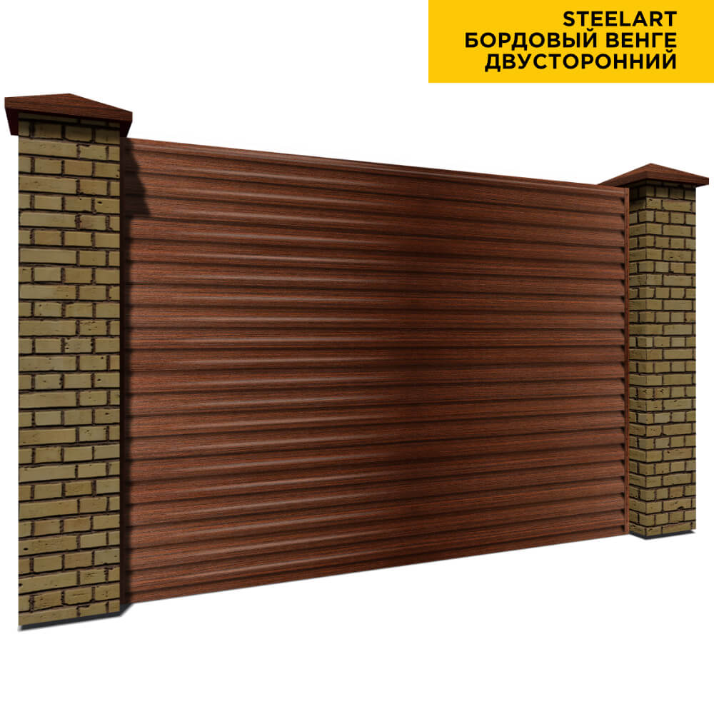 Ламель Еврожалюзи металлическая S-образная, цвет под дерево Бордовый Венге SteelArt Россия двухстороннее покрытие, длина любая кратно 1см под заказ - для забора-жалюзи, беседки, перголы в Владимире