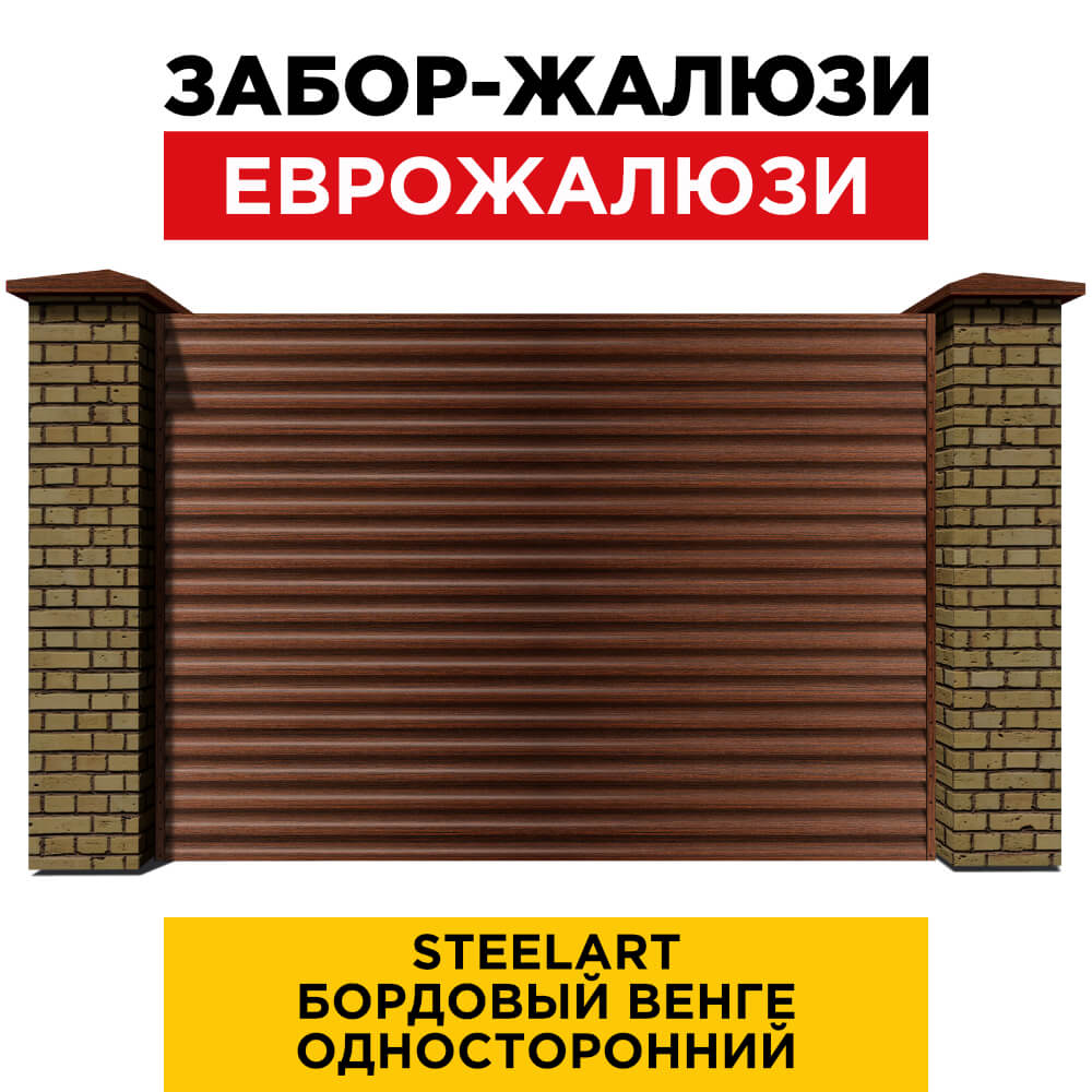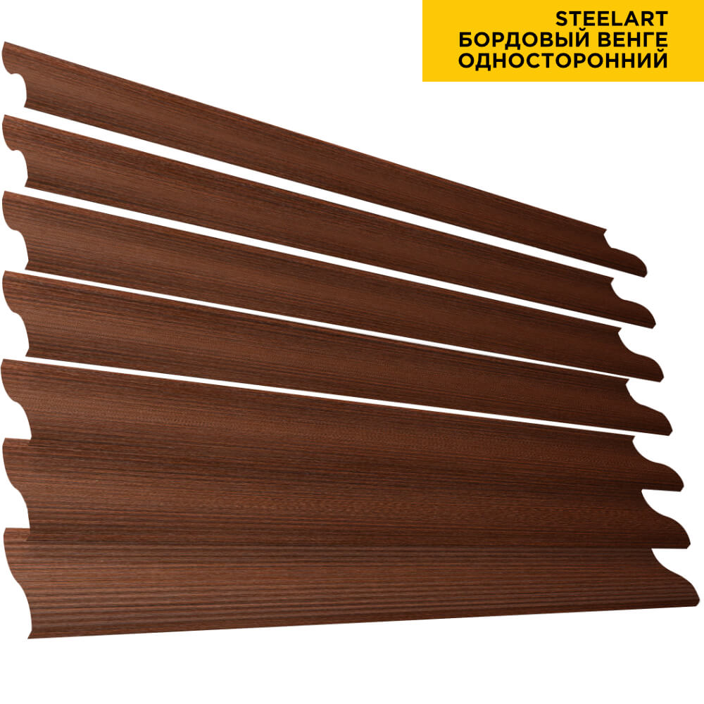 Ламель Еврожалюзи металлическая S-образная, цвет под дерево Бордовый Венге SteelArt Россия одностороннее покрытие, длина любая кратно 1см под заказ - для забора-жалюзи, беседки, перголы в Владимире