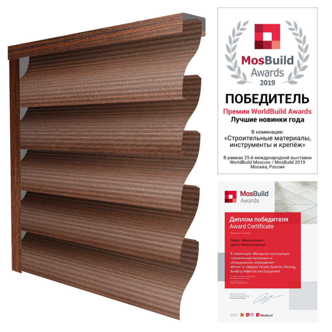 Обладая воздухопроницаемостью, еврожалюзи отлично подойдут для расположенных в низинах участков. Установленные под углом ламели не позволяют воздуху застаиваться и способствуют испарению ненужной влаги. Рельефная форма ламелей еврожалюзи не сравнится со стандартным забором — ограждение имеет визуальную глубину благодаря трёхмерным пластинам. Такой забор станет качественной акустической преградой, расположившись у автомагистралей и проезжих частей.