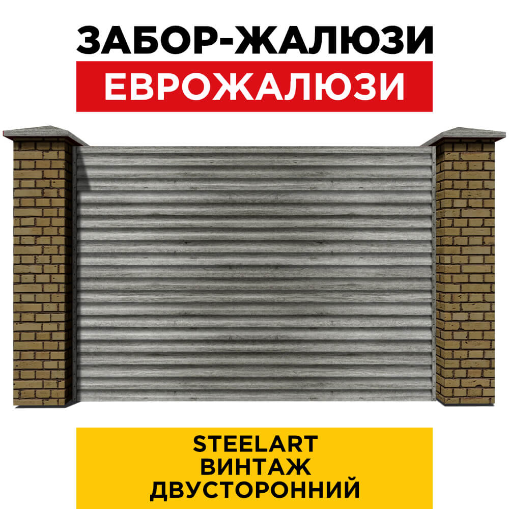 Ламель Еврожалюзи металлическая S-образная, цвет под дерево Винтаж SteelArt Россия двухстороннее покрытие, длина любая кратно 1см под заказ - для забора-жалюзи, беседки, перголы в Владимире
