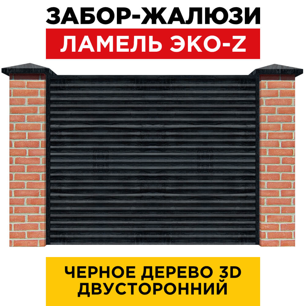 Ламель металлическая Z-образная простая ЭКО-Z, цвет под дерево Черное Дерево 3D Принтек двухстороннее покрытие, длина любая кратно 1см под заказ - для забора-жалюзи, беседки, перголы в Владимире.