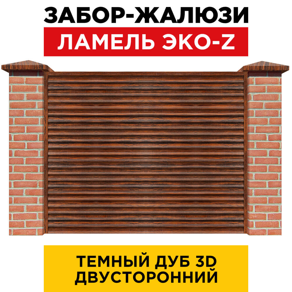 Ламель металлическая Z-образная простая ЭКО-Z, цвет под дерево Темный Дуб 3D Принтек двухстороннее покрытие, длина любая кратно 1см под заказ - для забора-жалюзи, беседки, перголы в Владимире