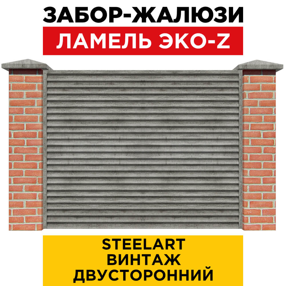 Ламель металлическая Z-образная простая ЭКО-Z, цвет под дерево Винтаж SteelArt двухстороннее покрытие, длина любая кратно 1см под заказ - для забора-жалюзи, беседки, перголы в Владимире